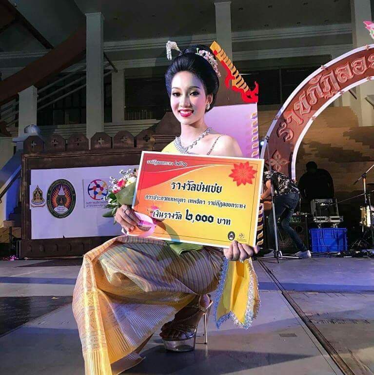 รางวัลสาวงามปีการศึกษา 2560 นางสาวณัฐธมลวรรณ ธัญญวิรุฬห์ (น้องใบเตย) นักศึกษา ชั้นปีที่ 1 รหัส 60 โปรแกรมวิชาการประถมศึกษา คณะครุศาสตร์ มหาวิทยาลัยราชภัฏกำแพงเพชร