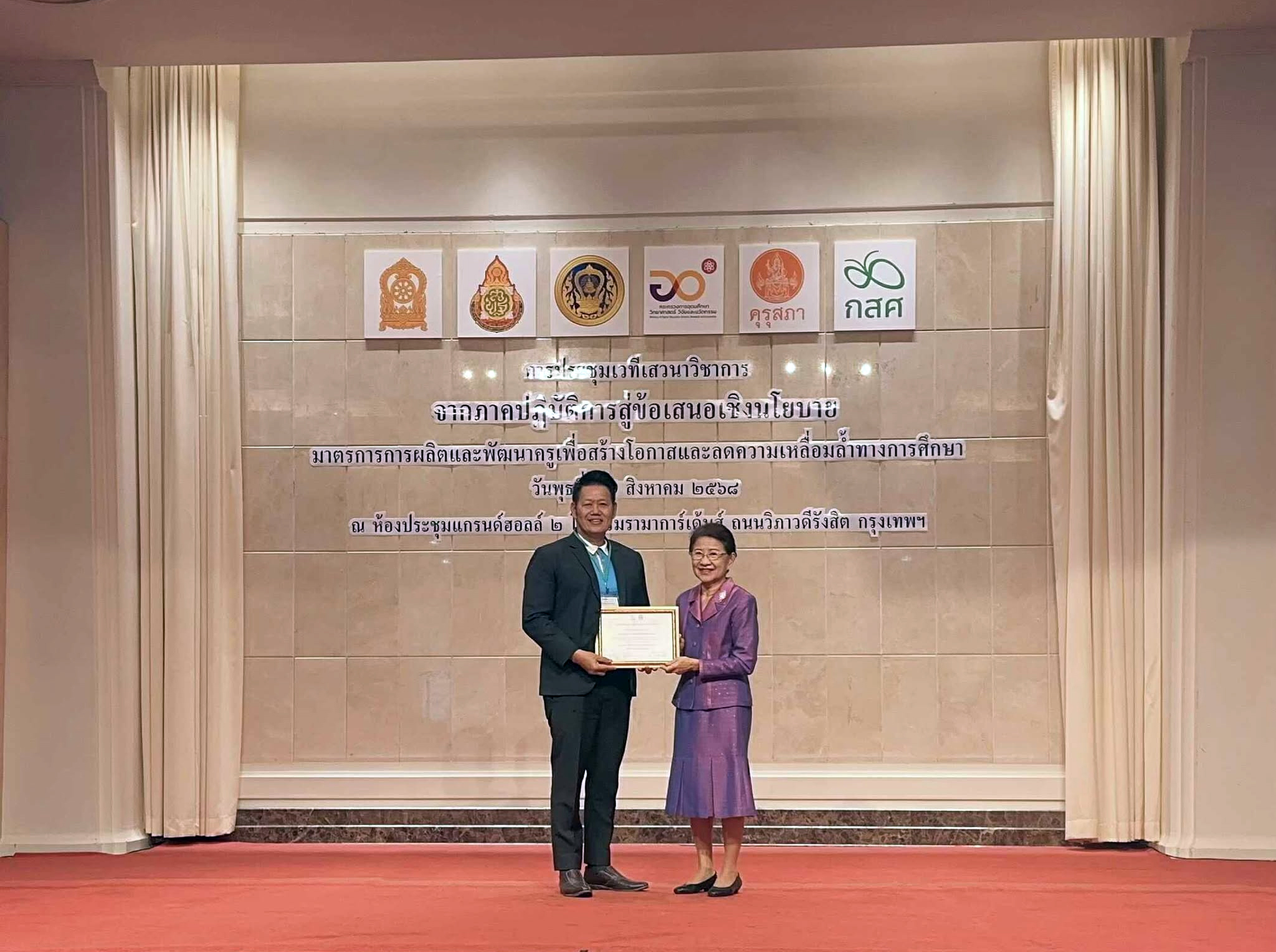 การประชุมเสวนาวิชาการจากภาคปฏิบัติการสู่ข้อเสนอเชิงนโยบายมาตรการการผลิตและพัฒนาครูเพื่อสร้างโอกาสและลดความเลื่อมล้ำทางการศึกษา โดยกองทุนเพื่อความเสมอภาคทางการศึกษา กสศ. ซึ่งมีวัตถุประสงค์ 1)เพื่อแลกเปลี่ยนบทเรียนและข้อเสนอสำคัญจากการดำเนินงานโครงการผลิตครูที่สำคัญของประเทศ 2)เพื่อนำบทเรียนและข้อเสนอเชิงนโยบายจากการดำเนินงานโครงการครูรัก(ษ์)ถิ่น ระยะที่ 1 ปี 2563-2567 มาแลกเปลี่ยนเรียนรู้สำหรับการพัฒนาโครงการครูรัก(ษ์)ถิ่น ระยะที่ 2 และ3)เพื่อส่งเสริมให้ภาคีเครือข่ายทุกภาคส่วนร่วมมีบทบาทสนับสนุนการดำเนินงานและทรัพยากรเพื่อสร้างโอกาสและลดความเลื่อมล้ำทางการศึกษา